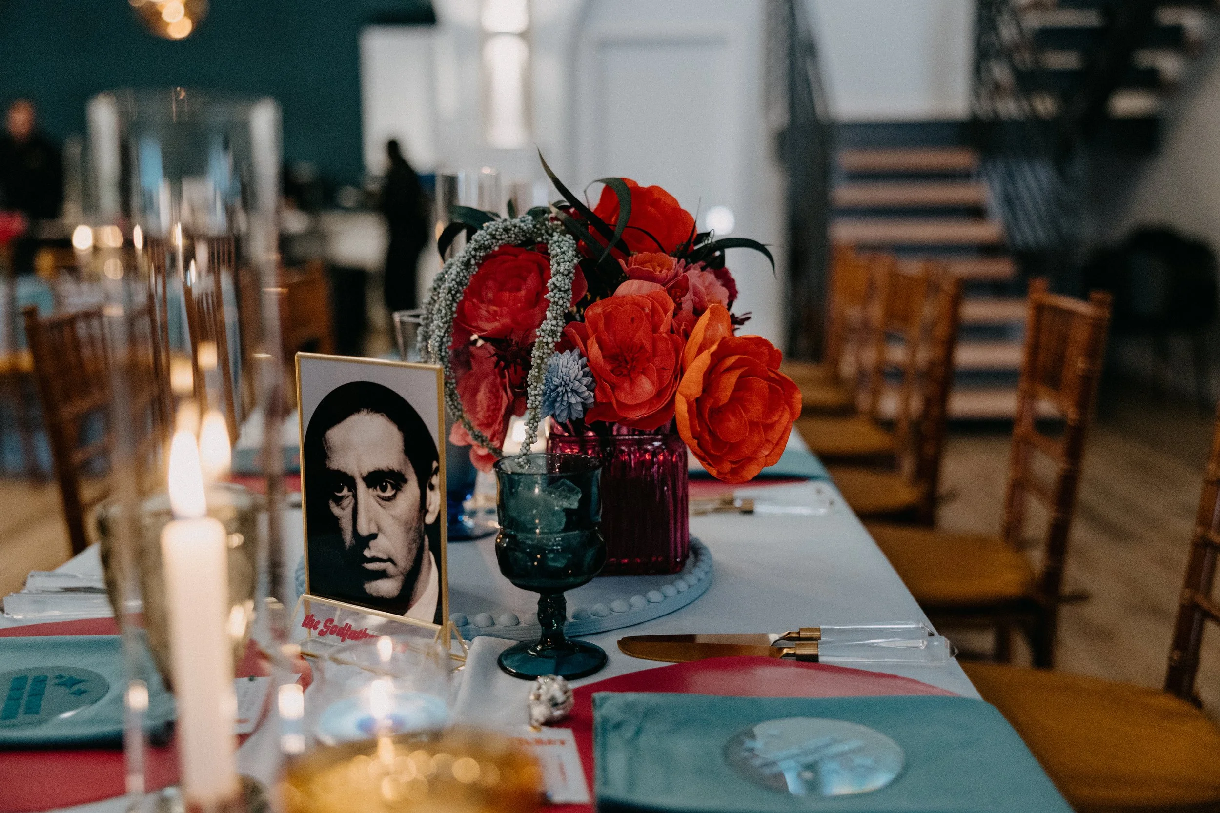 Chris and Hannah love movies, especially the classics. Each of their tables was named after one of their favorite films (think The Godfather Pt. 2 and Cabaret) and we had old black and white movies projected onto one of the walls throughout the night. We also had Ashtyne Cole capture their day on a vintage Super8 camera, as a nod to their love of vintage film. Majestic Photo Booth was also there to provide a nostalgic guest experience.