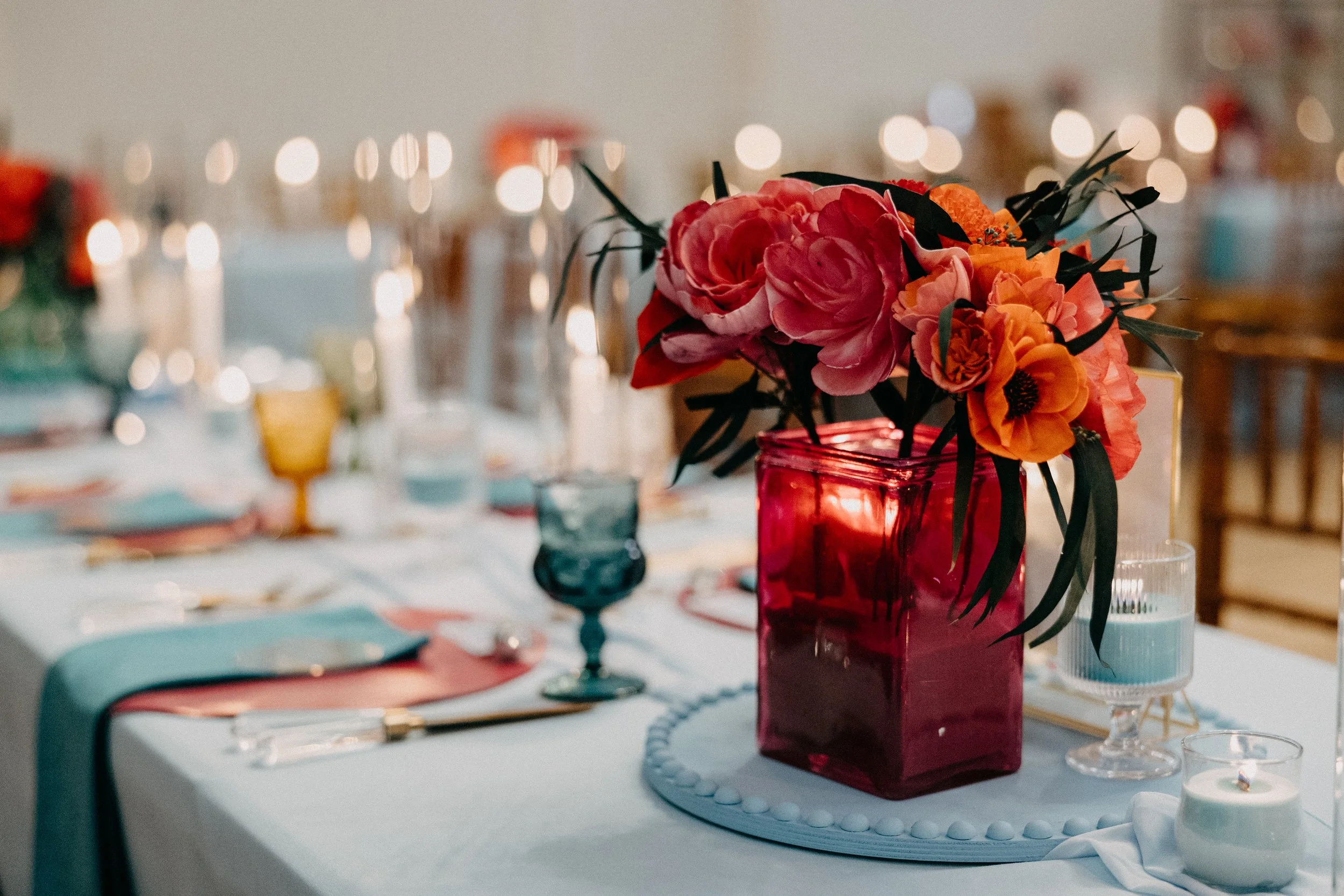 Hannah & Chris came to us with a vision that sounded like it was specifically made for us - a colorful, funky, retro aesthetic with an ode to their love of movies. We could not be happier with how this day turned out.