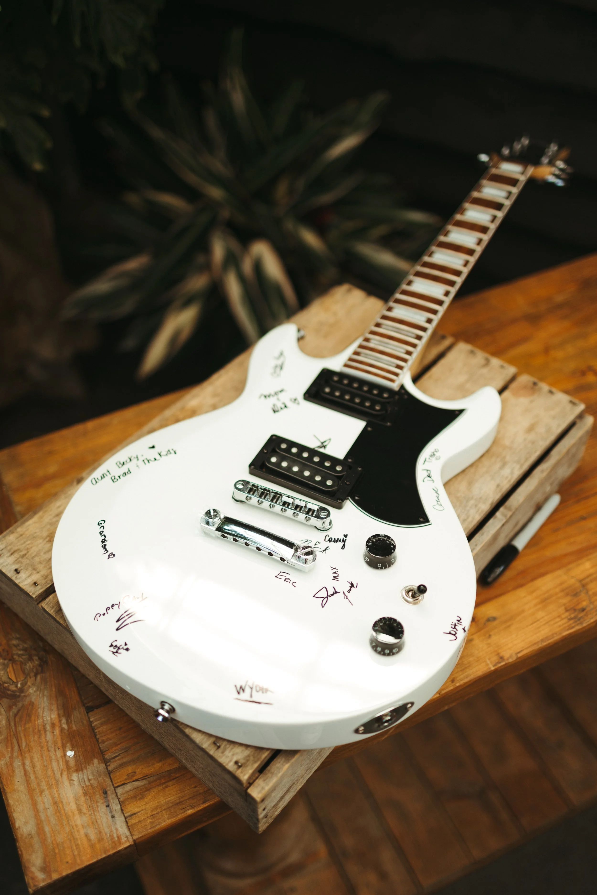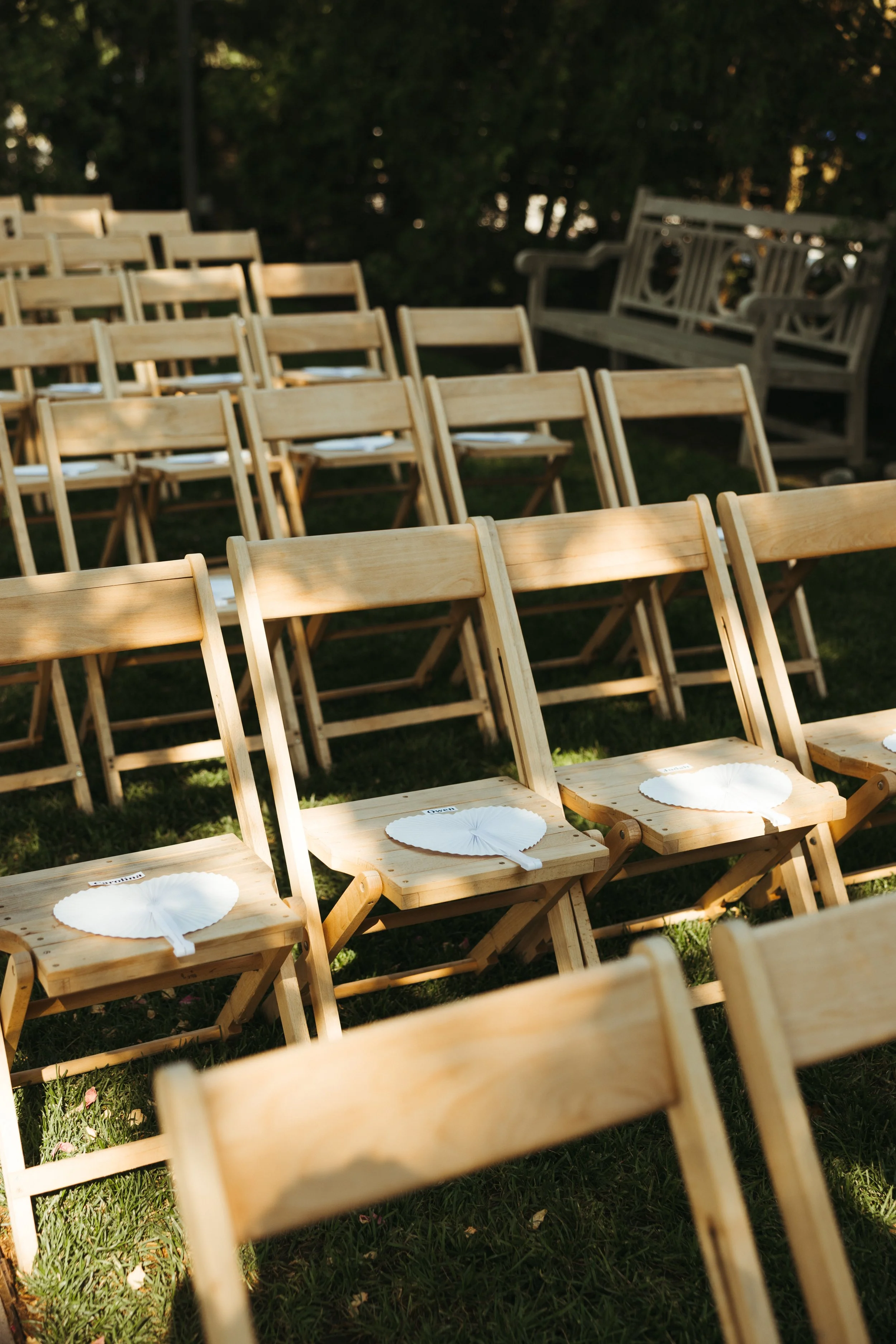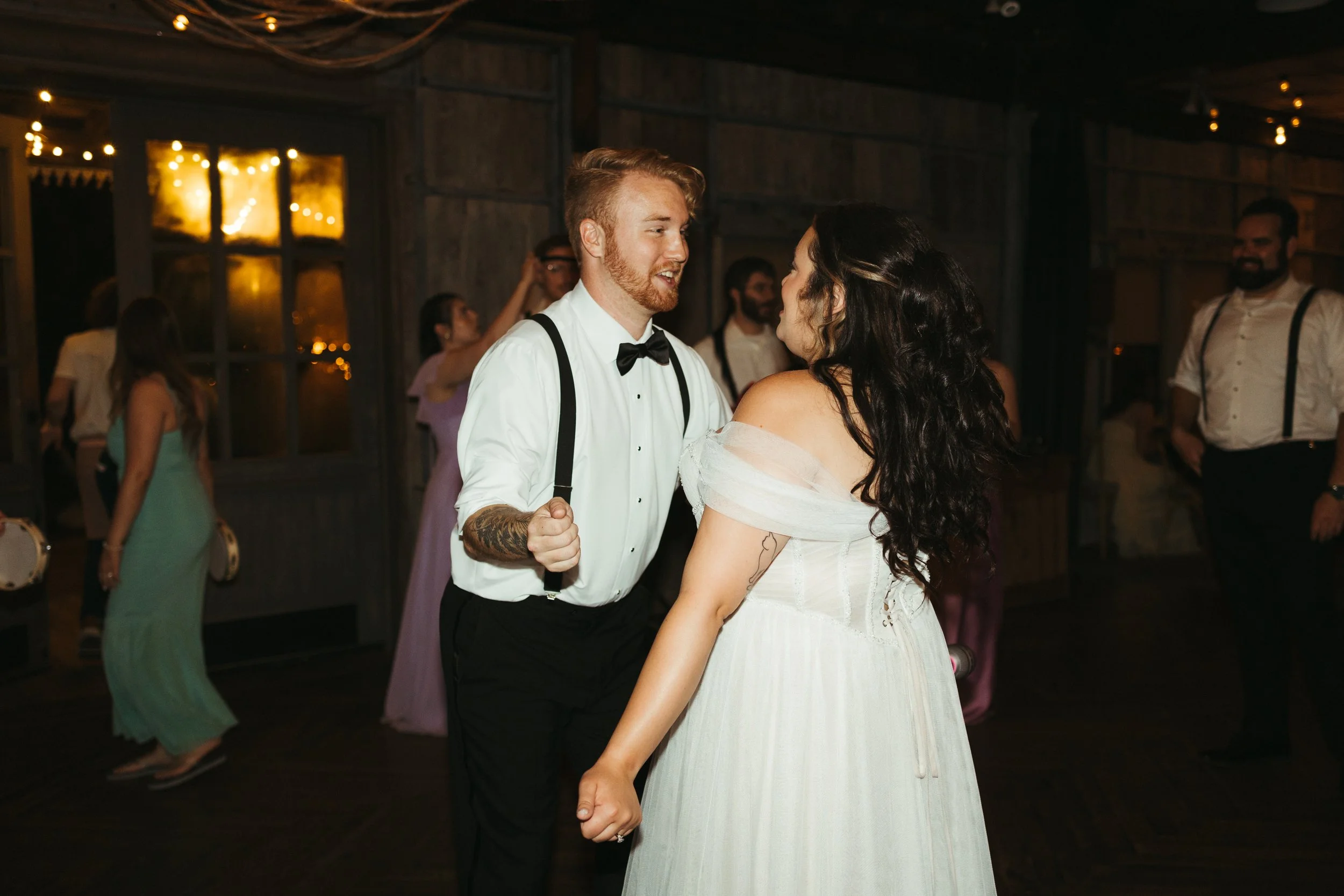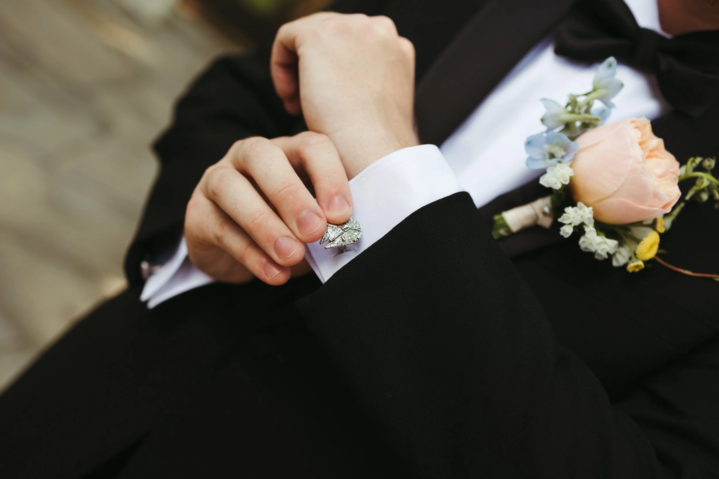 Katie & Tyler made sure their personalities were heavily incorporated into the day. Katie took their love of theater and made the ceremony programs as custom Playbills. As music lovers, they had Tyler’s guitar as a “guest book” for guests to sign. No Macarena spun pop punk tracks for the dance floor, reflecting the couple’s love of Emo Night. Of course, the most prevalent personalized touches were the nods to Star Wars. Tyler and his groomsmen each had move-quality Star Wars helmets and actual, working light sabers. Later in the night, Katie & Tyler posed with the light sabers for a photo op, which turned into guests having light saber duels under the summer stars.