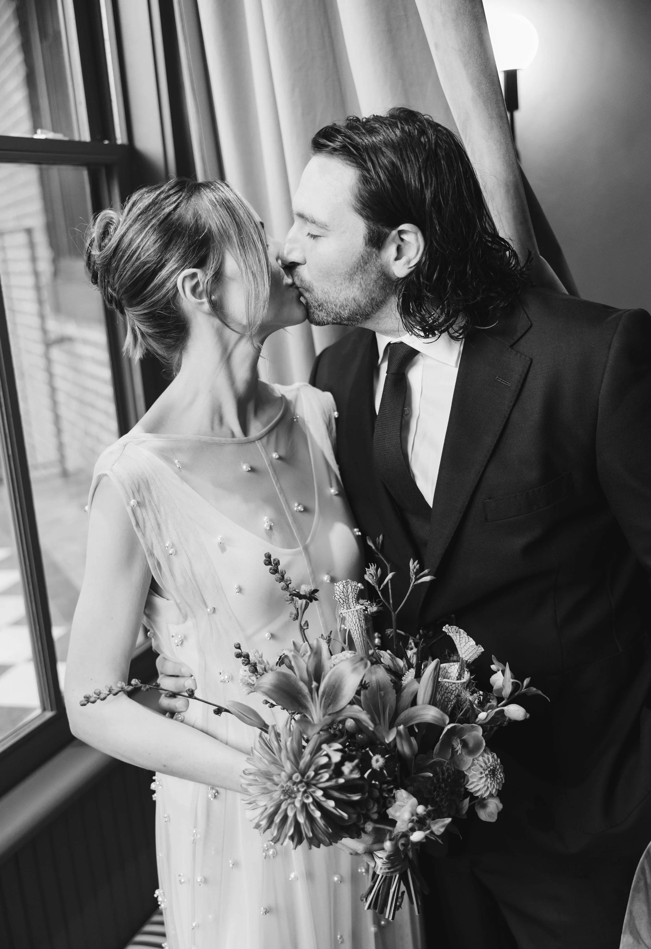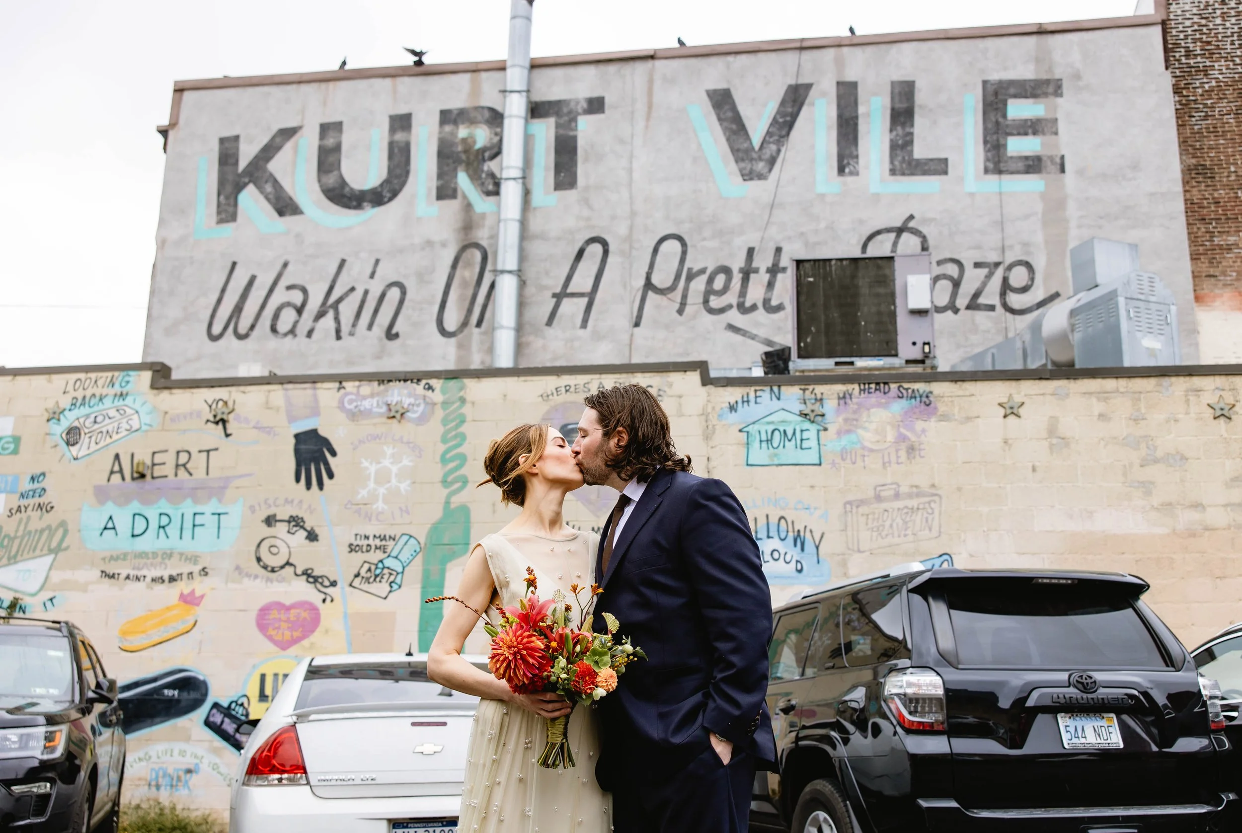 We had long admired the work of Kirby Lowenstein, aka Kirby X Art, from afar. Then, to our delight, she reached out to us about helping with her and Ryan’s wedding. What’s better? They were throwing a non-traditional dinner-party-esque celebration at Philly institution, Pizzeria Beddia. We could not have signed on faster.