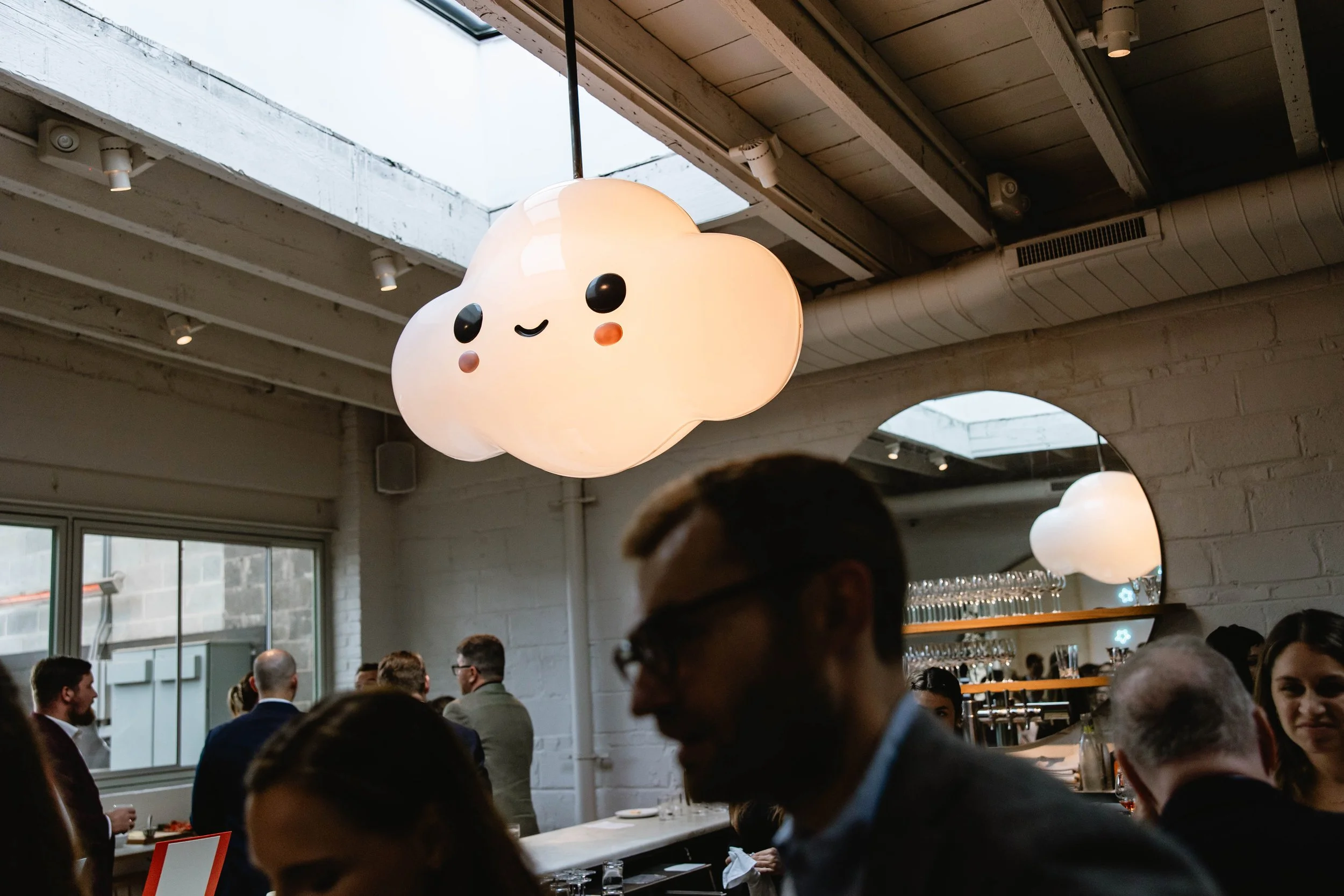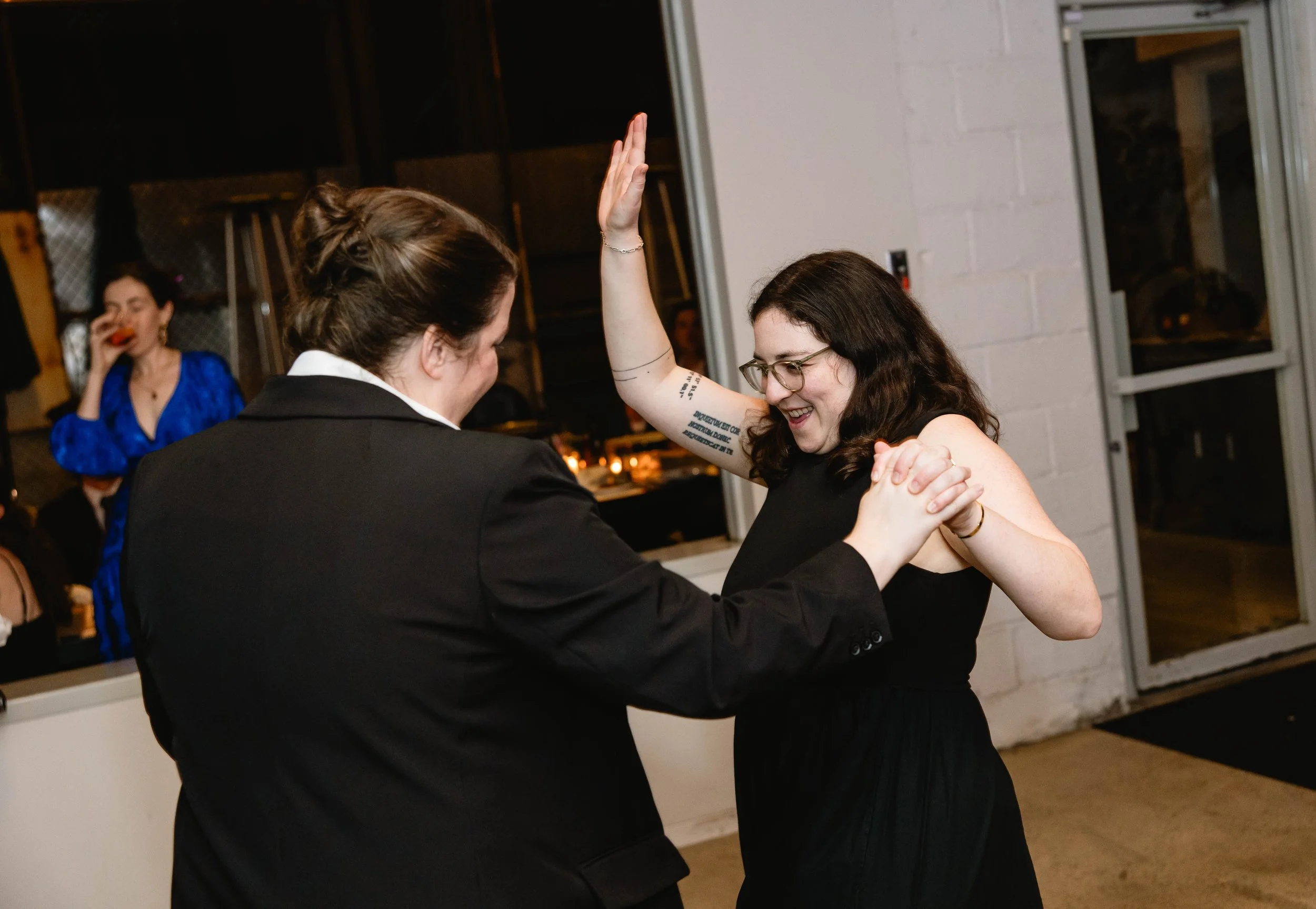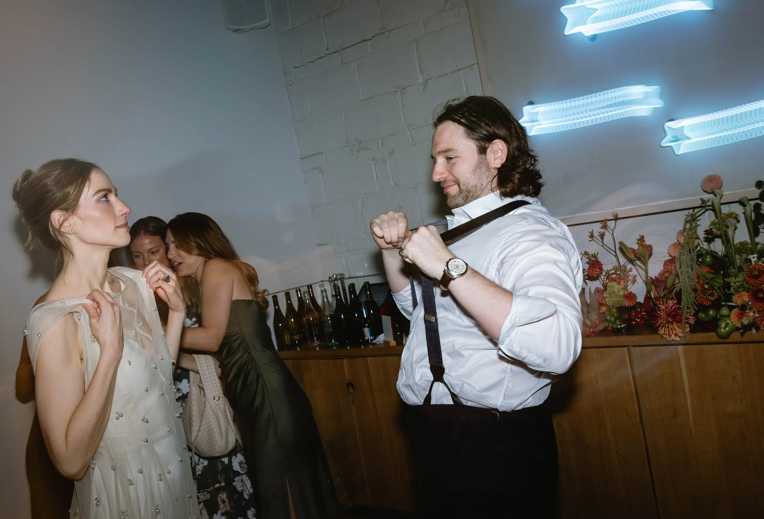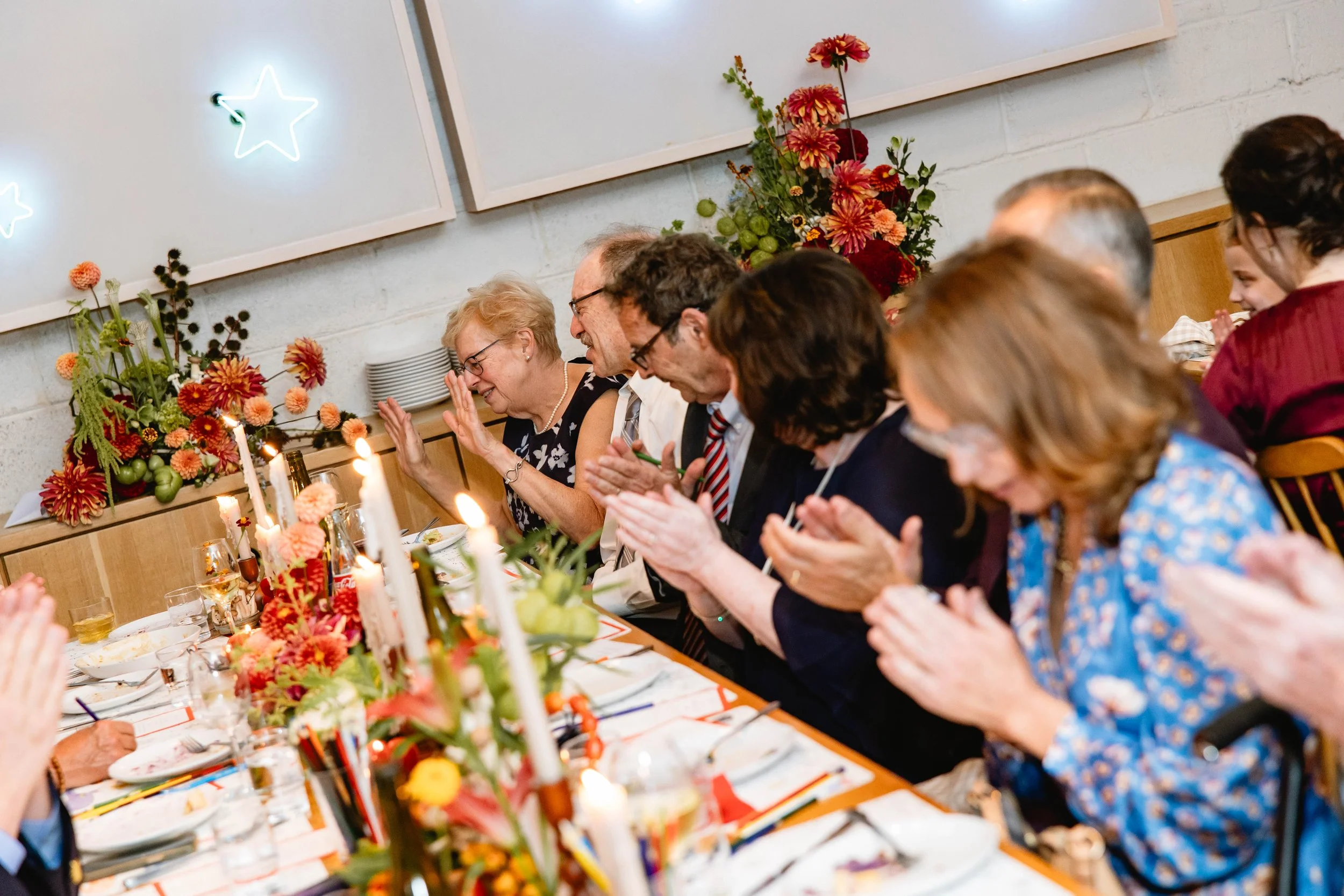 Pizzeria Beddia provided the most special, fun, and unique setting. Kirby and Ryan said their vows in front of the “star wall”, adorned with neon star lights, and above the bar was the famous smiley cloud chandelier. Guests enjoyed cocktail hour on the outdoor terrace and bar area, while we flipped the ceremony space for dinner. After dinner, we transformed the space again, clearing the tables to form the dance floor for an epic party.